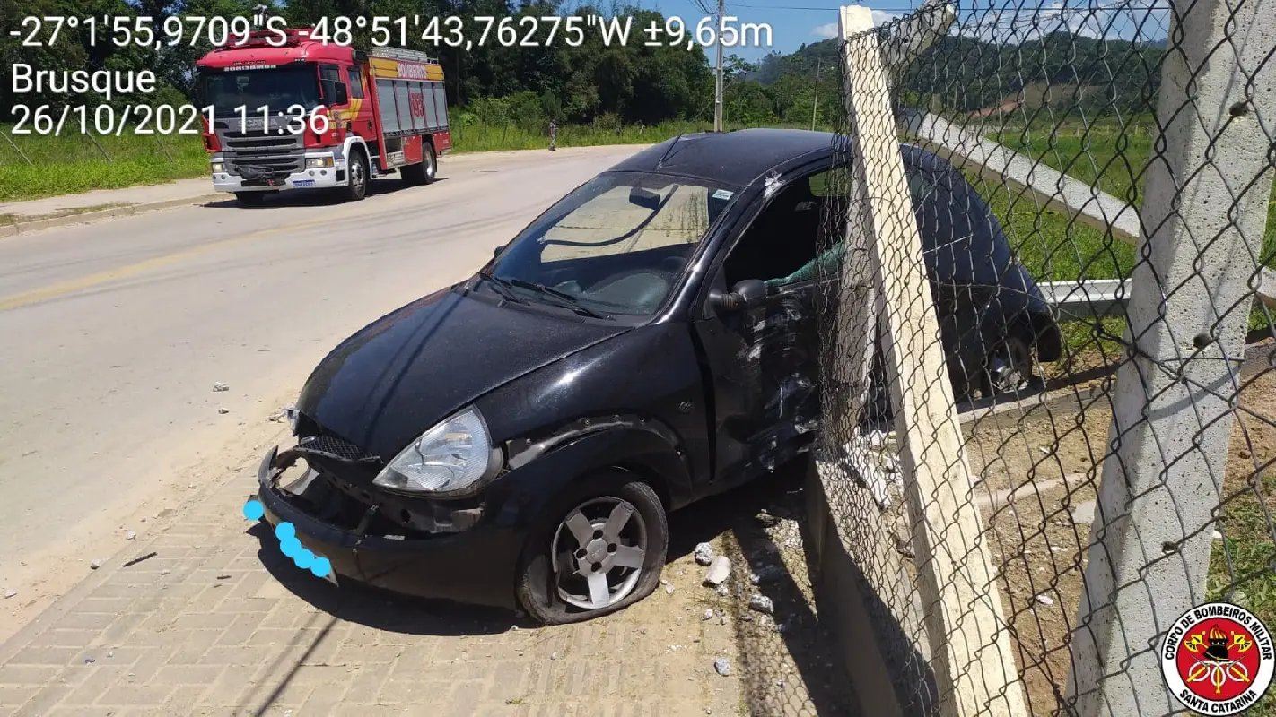 Um homem foi conduzido ao pronto-socorro do hospital de Azambuja após bater de carro e derrubar um poste o acidente aconteceu na manhã desta terça-feira (26), na Rua Abraão de Souza e Silva, região do bairro Volta Grande, em Brusque.