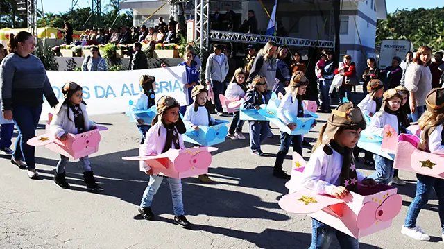 Além das escolas municipais, desfilam os dois educandários estaduais, a Fundação Cultural e a Secretaria Municipal de Esportes, Lazer e Assuntos para a Juventude. A concentração dos participantes ocorre a partir das 7h nas imediações da Escola de Educação Básica Professor João Boos.