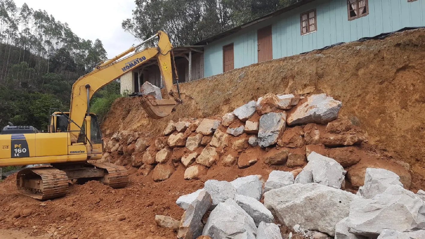 As chuvas do último dia 12 e geraram deslizamentos de terra em diferentes pontos da região, também afetaram o entorno da Igreja Adventista do bairro Lageado Alto, em Guabiruba. O local já havia recebido uma barreira de contenção, no ano passado. com as chuvas, parte da estrutura acabou sendo destruída.