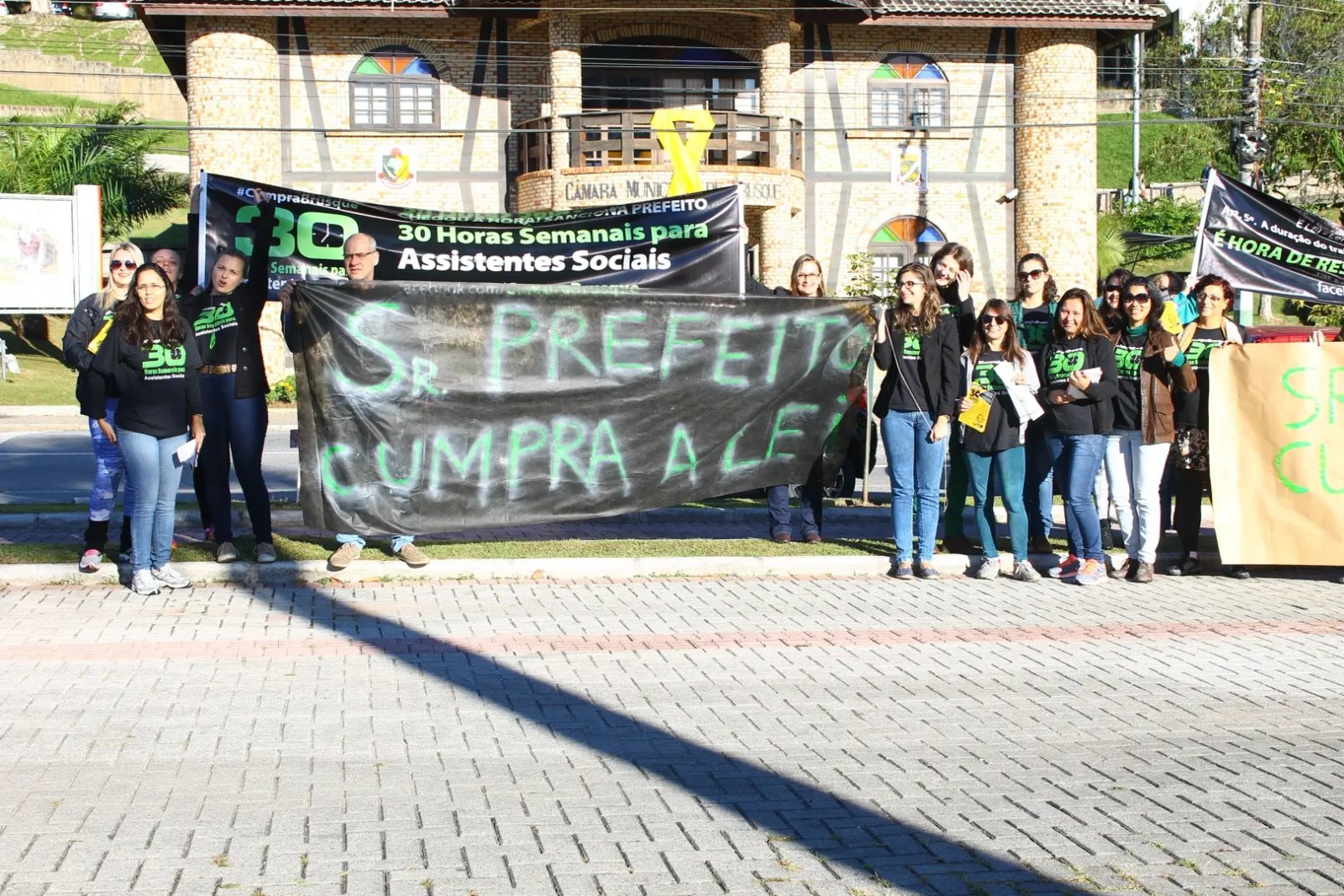 Uma paralisação realizada pelos assistentes sociais de Brusque foi realizada na manhã desta terça-feira (17) na Praça Sesquicentenário.