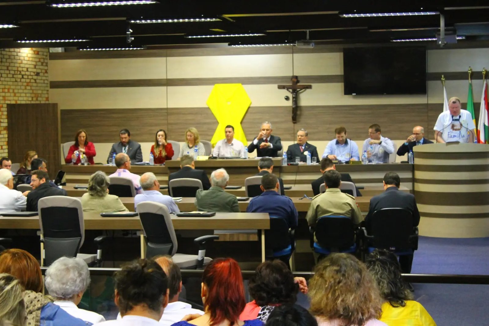 A abertura oficial da VI Semana da Família aconteceu na manhã desta sexta-feira (13), no Plenário da Câmara Municipal de Brusque. A sessão solene teve início as 8h30 e contou com a presença do Procurador e Corregedor-Geral do Ministério Público do Estado de Santa Catarina, Gilberto Callado de Oliveira, o qual proferiu um discurso sobre a origem e a importância da família.