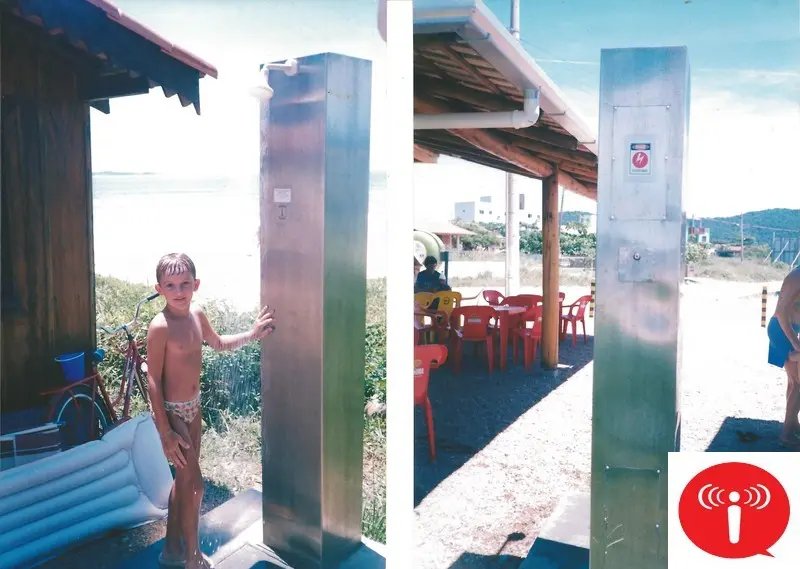 De início, o chuveiro foi criado para ser colocado em áreas externas. Foi feito uma caixa de inox, 25x25, dentro dela tem um orifício, onde se coloca a ficha ou moeda, ela cai e aciona o tempo determinado. Então, a água vai sair pelo chuveiro, conta. Acabando o tempo, encerra o fluxo de água. Se ainda tiver que usar a água, terá que colocar mais uma ficha. A moeda cai num tipo de cofre, o responsável pela caixa terá uma chave para poder acessar e retirar as fichas/moedas. A instalação é feita normalmente, com uma base fixa no alto conectado com a entrada de energia e de água.