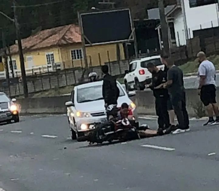 Um acidente nada convencional aconteceu na tarde deste sábado (16), por volta das 15h54, no bairro Santa Terezinha. Um motociclista bateu na traseira de uma carroça, no meio da Rodovia Antônio Heil, próximo ao Viaduto Ficher.