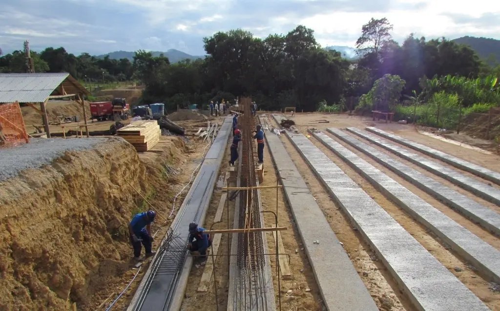 As escavações das estacas para a execução das fundações dos pilares de sustentação da ponte do Bairro Rio Branco, em brusque, seguem dentro do ritmo esperado pela equipe de fiscalização da obra. A expectativa é que em um mês, o serviço inicial de estruturação da passagem esteja concluído. Paralelo aos trabalhos, a empresa licitada realiza a montagem das vigas de 40 metros de extensão no próprio canteiro.