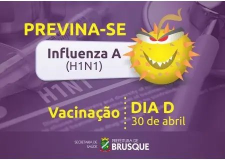 O Dia D em combate a influenza A acontece no próximo sábado (30), em Brusque, quando todas as Unidades Básicas de Saúde estarão abertas para a vacinação das 8h às 17h, sem fechar para almoço.