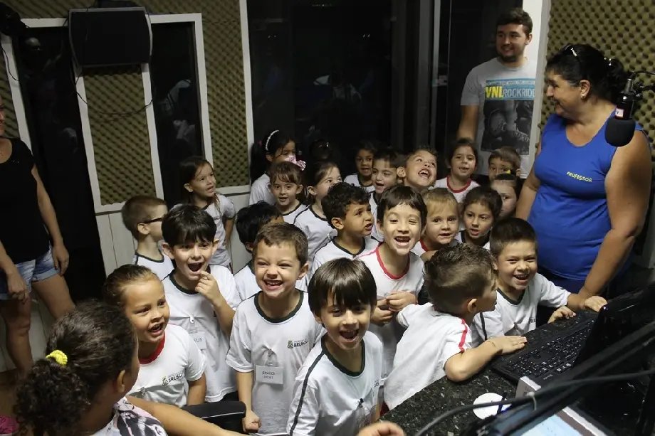 Durante a manhã desta terça-feira (26), a Rádio Cidade recebeu a visita dos alunos do Centro de Educação Infantil Tia Trude, que fica no bairro Dom Joaquim. 26 crianças conheceram o estúdio e a estrutura da Rádio Cidade, além de saber como funciona o trabalho dentro de uma emissora de rádio.