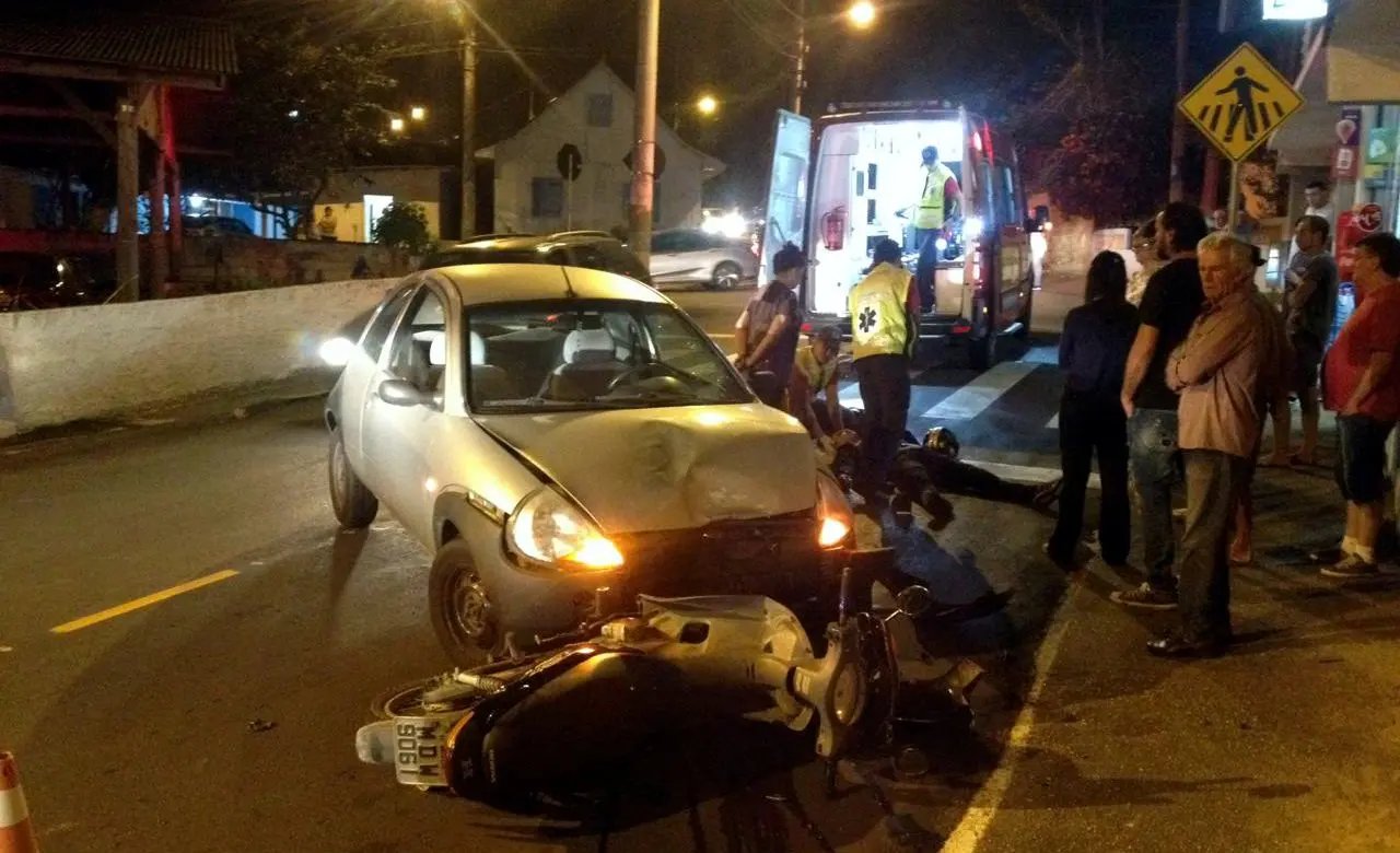 O Corpo de Bombeiros de Brusque atendeu três acidentes com vítimas na noite desta sexta-feira (11). Por volta das 18h30 ocorreu um acidente de trânsito envolvendo carro e moto, na rua Nova Trento, bairro Primeiro de Maio.