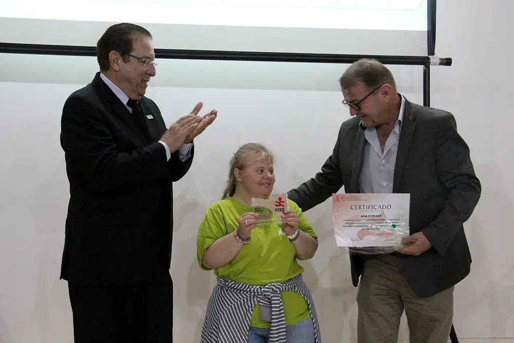 A Associação de Pais e Amigos dos Excepcionais (Apae) de Brusque recebeu uma homenagem especial no último dia 3 de maio, durante a solenidade de comemoração dos 50 anos da Fundação Catarinense de Educação Especial (FCEE), em Florianópolis. O evento reuniu dezenas de pessoas, entre servidores e educandos da FCEE, autoridades civis e militares, representantes de diversas Apaes e de demais entidades do Estado conveniadas com a FCEE, além de convidados especiais, que marcaram a trajetória da instituição estadual.