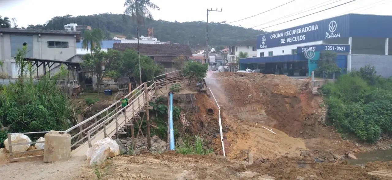 Após funcionar por mais de três meses sem maiores intercorrências, a rede provisória instalada pelo Serviço Autônomo Municipal de Água e Esgoto (Samae) de Brusque no local onde passava a ponte Prefeito Antônio Heil - que caiu no último dia 9 de junho - acabou rompendo durante a tarde desta terça-feira, 28 de setembro.