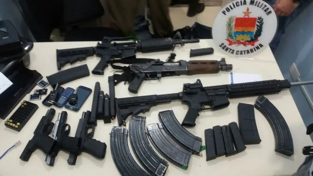 Conforme a PM, houve perseguição e troca de tiros entre os policiais e os criminosos, mas ninguém se feriu. Além dos detidos, a polícia apreendeu o armamento, entre metralhadoras AR15, M4 e AK47.