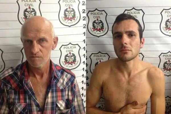 A PM foi acionada e iniciou buscas à procura dos ladrões, vindo a encontrar o referido automóvel no bairro Carmelo de Dentro, em frente a uma residência. Os policiais avistaram dois homens em atitude suspeita no local e conseguiram detê-los, sendo identificados como Rosaldo Conrad, 50 anos, e Jefferson Aurélio da Silva, 25. Segundo a Polícia Militar, as características repassadas batiam com as dos suspeitos.