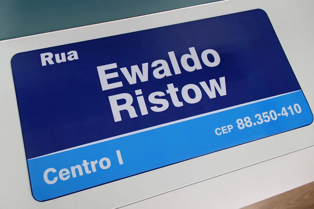Na manhã desta quinta-feira (31), o prefeito Roberto Pedro Prudêncio Neto e o diretor-presidente do Instituto Brusquense de Planejamento, engenheiro Juliano Montibeller, definiram o novo modelo de placas de identificação de vias do município.