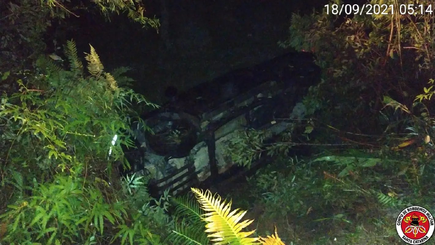 Um motociclista ferido após atingir a fiação soilta de um poste. Uma camionete caída dentro do ribeirão no mesmo local. Esse foi o cenário de uma cidente atendido pelo Corpod e Bombeiros de Brusque na madrugada deste sábado (18).