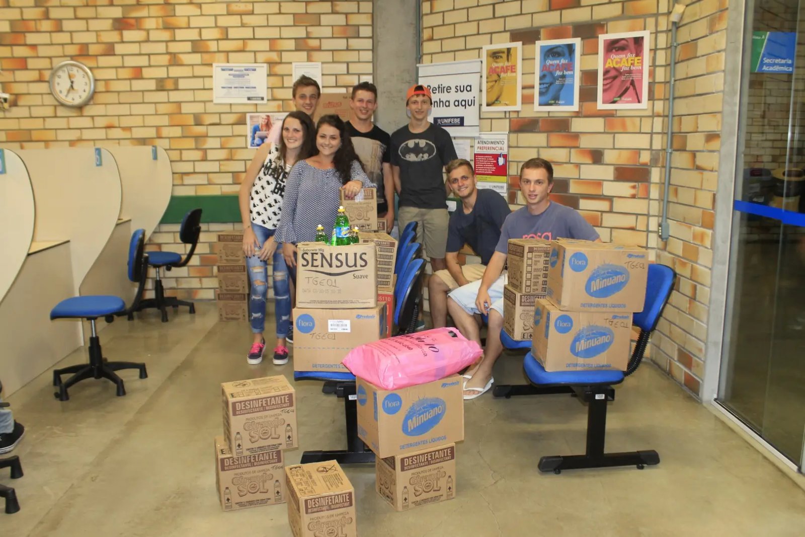 Neste semestre o trote solidário nomeado como “Ajudar faz bem”, arrecadou mais de três mil e trezentos itens de higiene pessoal e limpeza que serão entregues a AVOS - Associação de Voluntários do Hospital Joana de Gusmão, que fica em Florianópolis, no dia 29 de março.