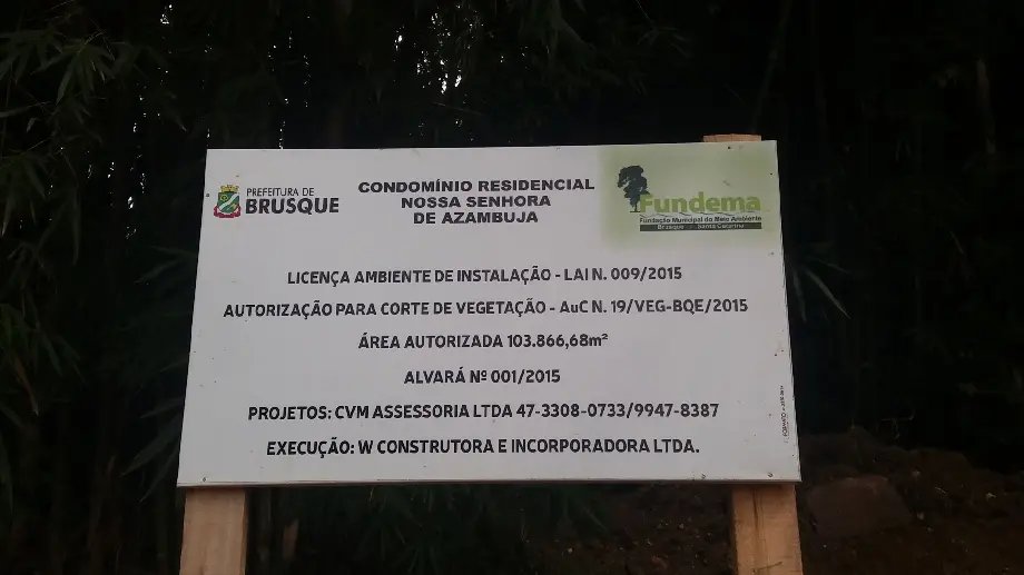 Segundo informações do fiscal Vinicius Medeiros, o condomínio residencial Nossa Senhora de Azambuja está sendo embargado devido ao grande impacto ambiental que o empreendimento está causando.