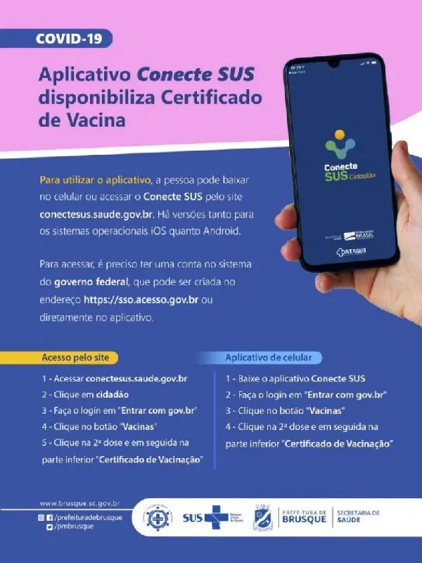 O Conecte SUS é um aplicativo gratuito do Ministério da Saúde. Ele mostra as informações gerais de cada cidadão, como a Carteira de Vacinação digital e o Certificado Nacional de Vacinação contra a Covid-19. Conforme o histórico pessoal, pode ainda reunir os resultados de exames laboratoriais de Covid-19, os medicamentos da “Farmácia Popular”, além de registros de doações de sangue e o acompanhamento da posição na fila de transplantes.