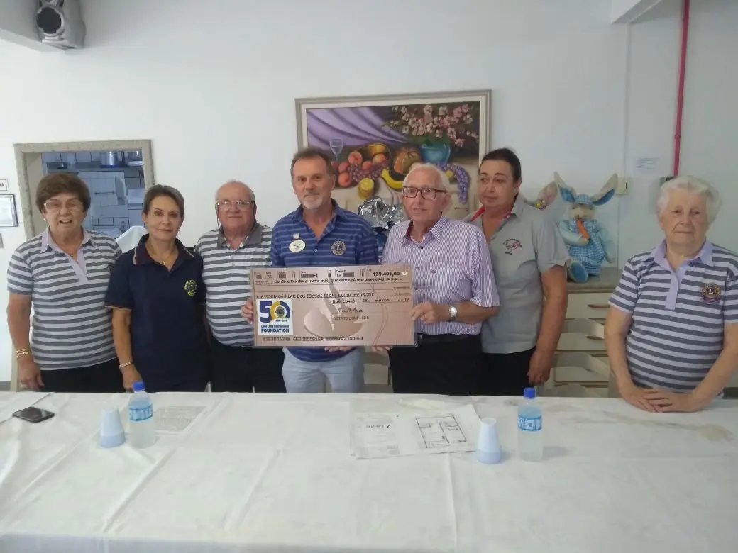 Na tarde desta terça feira (27), o Lar dos Idosos de Brusque recebeu um cheque no valor de R$139.401,00, doados pelo Lions Clube de Brusque. A doação servirá para a construção de uma lavanderia que atende todos os requisitos exigidos pelos órgãos reguladores.