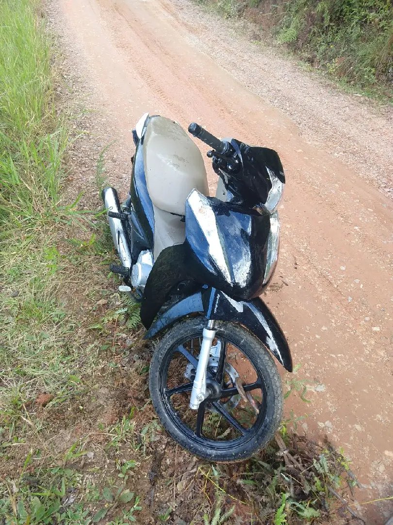 O policiais localizaram a motocicleta abandonada na rua PF-09, bairro Poço Fundo. A moto foi jogada em uma grota no meio da mata. A Honda Biz foi encaminha para Delegacia de Polícia onde deverá ser entregue para o Instituto Anjos do Peito.