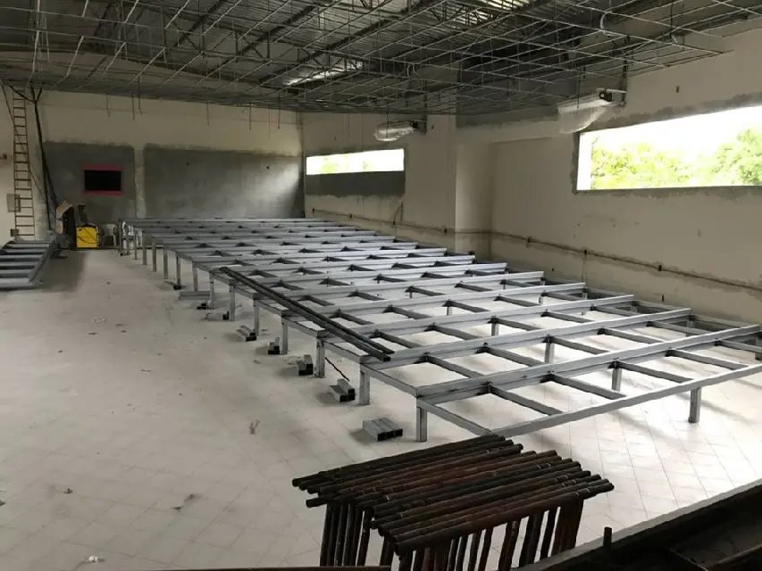 A reforma do Auditório Paroquial São Luís Gonzaga teve início em janeiro deste ano. Após serviços de alvenaria e conserto do telhado, as obras avançaram bastante nas últimas semanas, e o local já começa a ganhar forma de anfiteatro. Em março, foram iniciadas as instalações da parte preventiva contra incêndio, as instalações elétricas e a climatização. O espaço para uso diverso atrás do palco, com vestiários e acesso externo, está em fase de construção.