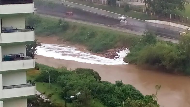Segundo ele, a espuma começou a sair por volta das 6h30 e aos poucos foi se espalhando, devido à chuva.