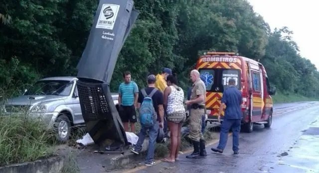 Ele morreu na hora e o equipamento ficou completamente amassado. A motocicleta também teve perda total, em razão da força do impacto causado pelo excesso de velocidade.