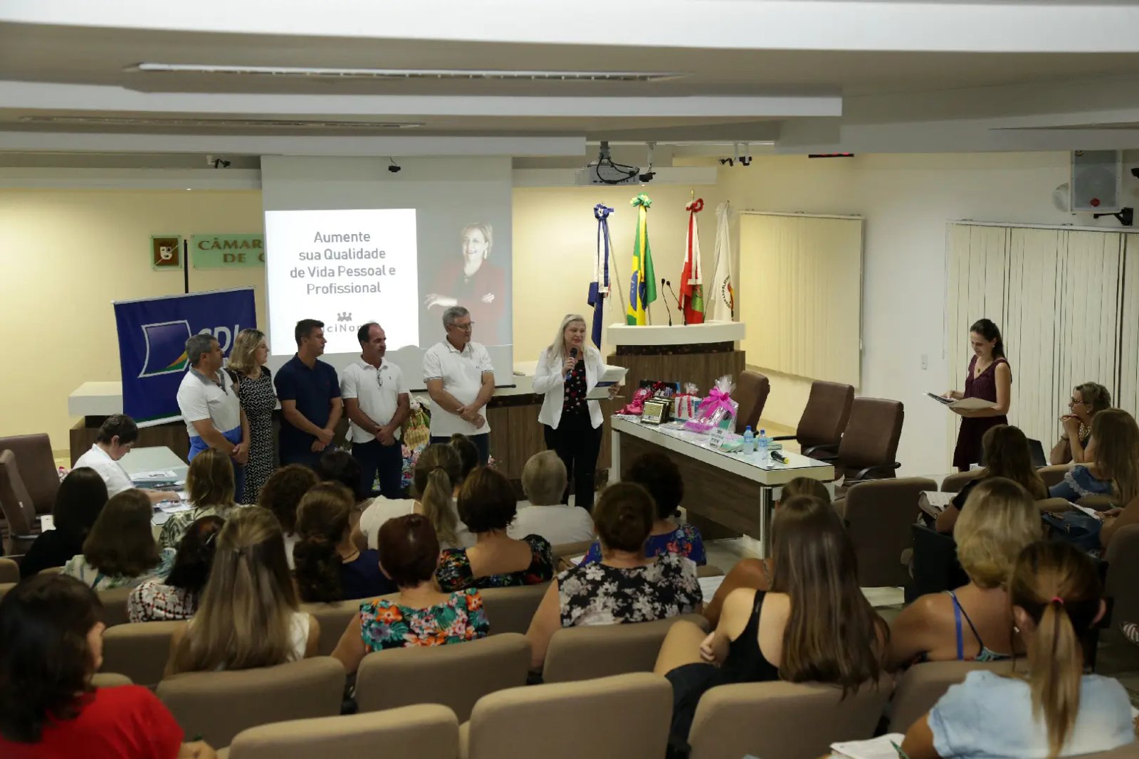Para marcar a passagem do Dia Internacional da Mulher, comemorado anualmente em 8 de maço, a Câmara de Dirigentes Lojistas (CDL) de Guabiruba em parceria com a Prefeitura Municipal e Câmara de Vereadores realizou uma palestra na noite de segunda-feira, 12, no plenário do Poder Legislativo. Cerca de 50 mulheres estiveram no evento, que teve como palestrante Juci Nones, especializada em Comunicação Corporativa e formada como Master Coach pelo Instituto Brasileiro de Coaching, além de escritora de quatro livros, sendo “Viva o seu Melhor” o mais recente.