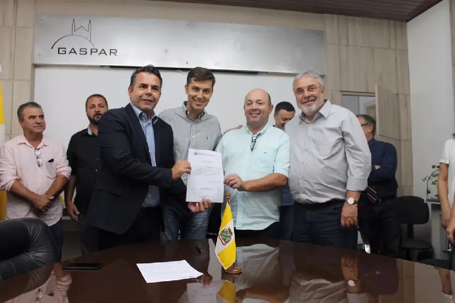 O ato de assinatura e entrega da ordem de serviço foram realizados na Prefeitura de Gaspar e contou com a presença dos envolvidos e demais autoridades.