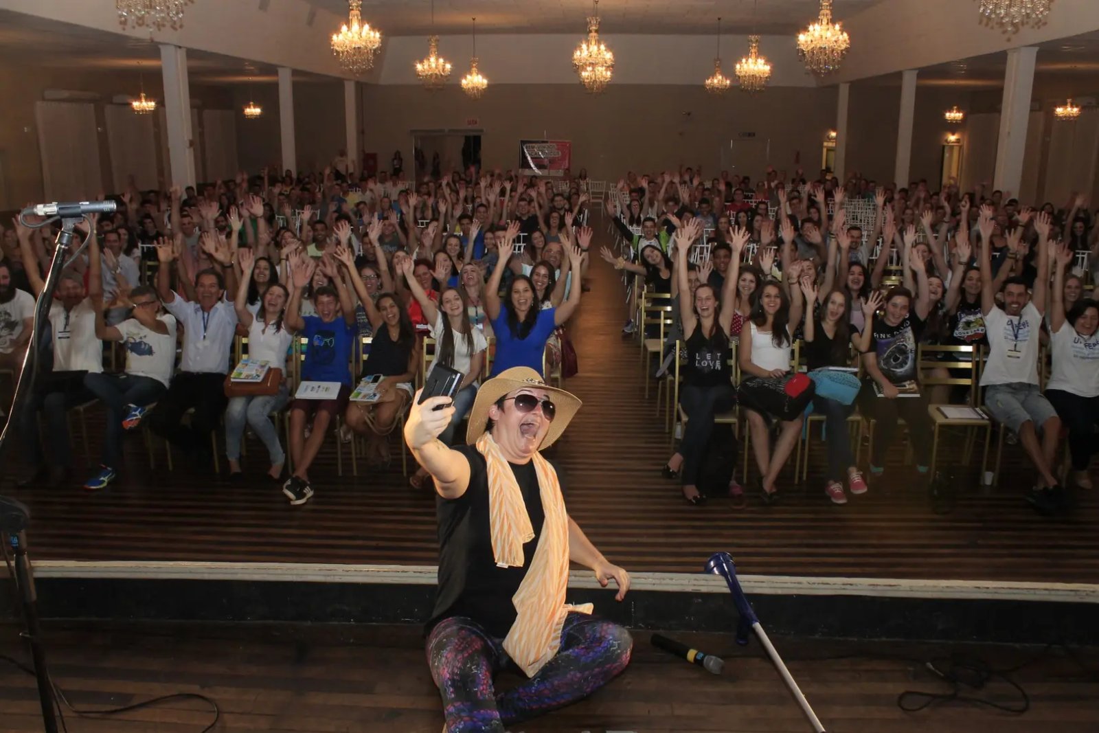 Para encerrar a noite, a brusquense Adalina — interpretada pela atriz Patrícia Souza — divertiu os acadêmicos com suas histórias e um bate-papo descontraído com sua amiga de todas as horas Salete. A acadêmica de Direito Brenda Fernando Semin aprovou a comédia.