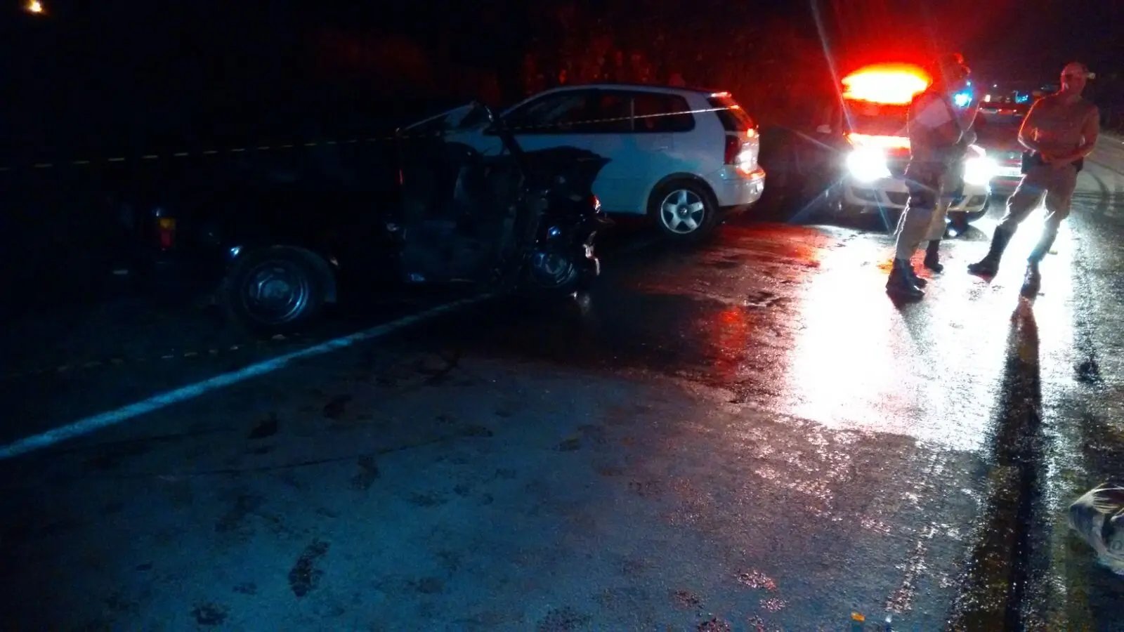 Ainda conforme a polícia, que atendeu a ocorrência, a colisão foi frontal envolvendo um VW Polo e um VW Gol, ambos de São João Batista. Devido à grande gravidade foram necessárias várias equipes do Corpo de Bombeiros.