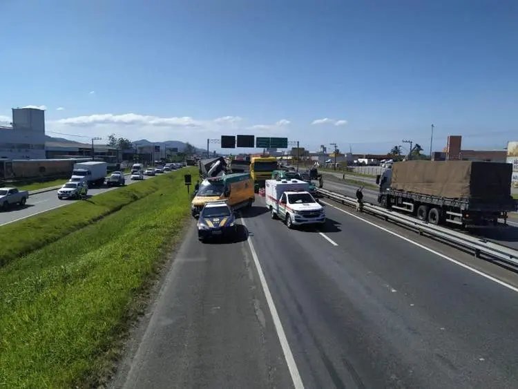 Neste sábado (22) um grave acidente fez uma vítima fatal na BR- 101. A colisão envolveu dois caminhões no Km 116 em Itajaí, proximo ao trevo da rodovia federal com a SC-412, a Rodovia Jorge Lacerda.