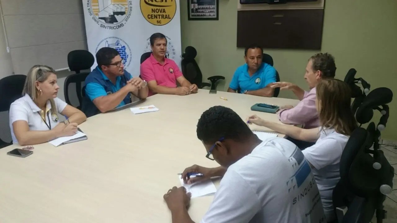 Participaram da reunião no Sintricomb o presidente da entidade, Izaias Otaviano, o diretor Dari Mota Sutil, que integra as equipes de vistorias, o coordenador de visitas em obras e de segurança no trabalho do Sintricomb, Clovis Lewin, a técnica em segurança do trabalho do Sintricomb, Kátia Regina Martins, o técnico em segurança do trabalho pelo Sinduscon, Rivanildo Cerqueira, a fiscal do Crea, Denise Bortolotto, e o diretor regional Brusque do Crea SC, Armando Walendowsky.