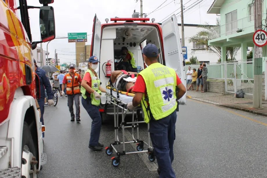 Um acidente de trânsito parou o tráfego de veículos na Rua Pedro Werner, no Centro de Brusque, na tarde desta segunda-feira (1). Um ciclista atingiu a traseira de um Honda City e a gravidade do ferimento levou várias equipes dos bombeiros ao local