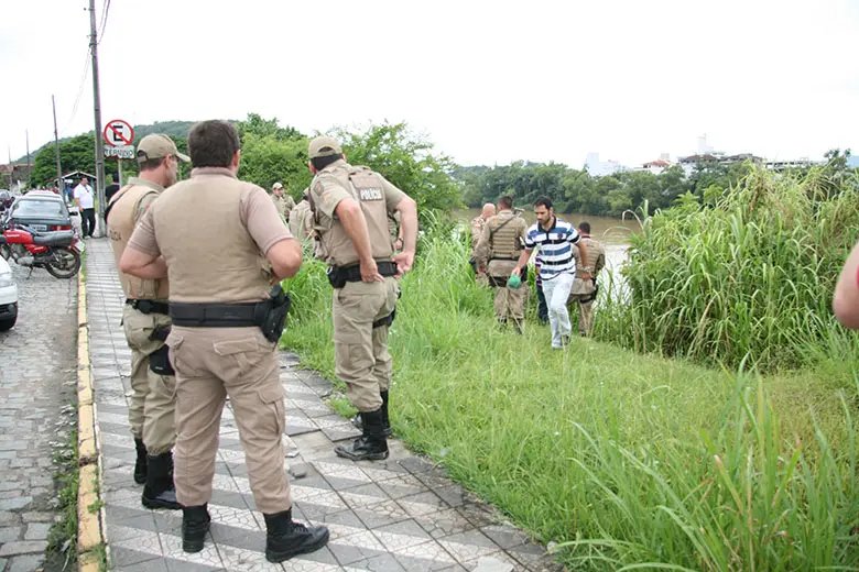 Foi então que iniciou-se uma perseguição, um dos suspeitos acabou efetuando um disparo de arma de fogo que atingiu a perna de um dos policiais. Mesmo assim, três dos criminosos acabaram sendo rendidos e presos pela PM. O quarto conseguiu fugir, embrenhando-se na mata que existe nas margens do Rio Itajaí-Açu, nas proximidades da Ponte Hercílio Deeke.