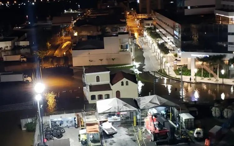 O fluxo das águas chegaram a 1,75 metros de altura, o que resultou no alagamento de algumas ruas na região central da cidade.