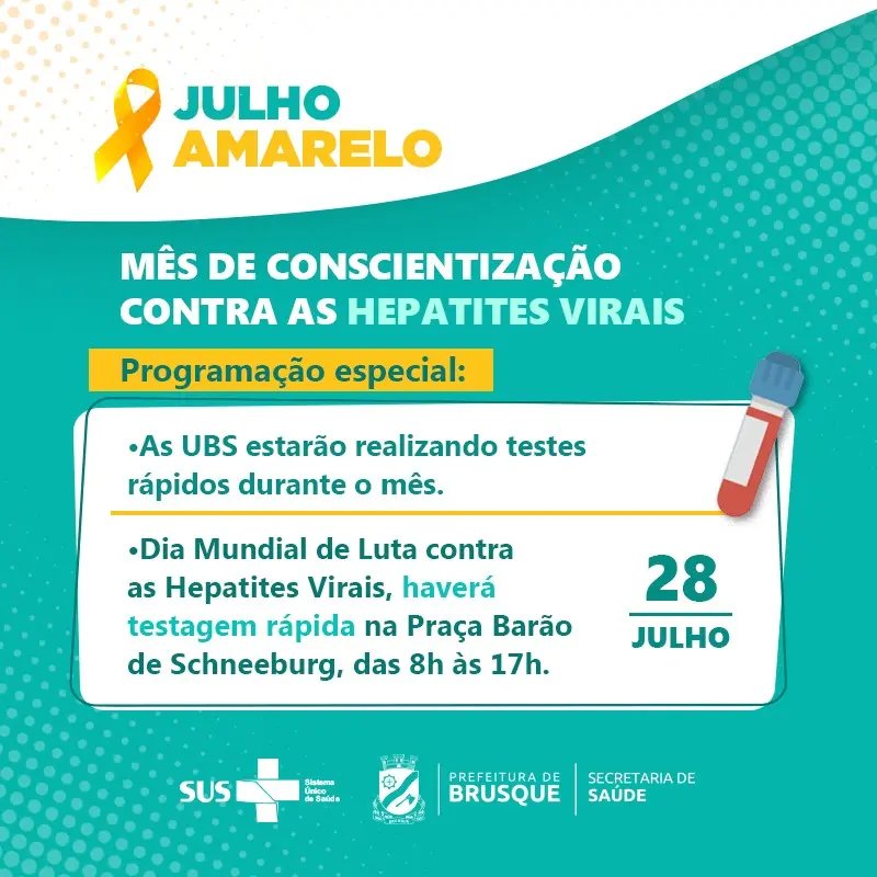Em Brusque, além da ação especial de quarta-feira, o Julho Amarelo vem tendo a oferta do teste rápido durante todo o mês nas Unidades Básicas.