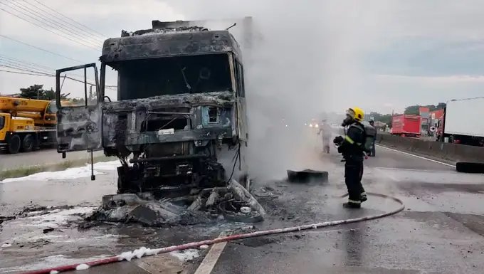 Apesar de tudo, ninguém se feriu e apenas parte do caminhão foi consumida pelas chamas. Os bombeiros levaram quase uma hora para controlar o fogo.