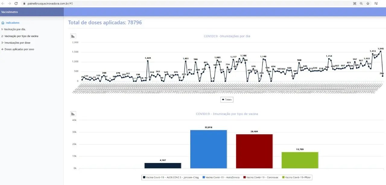 Para quem quiser acompanhar o Painel com os indicadores de imunização, o endereço de acesso é o https://painelbrusque.inovadora.com.br/#5