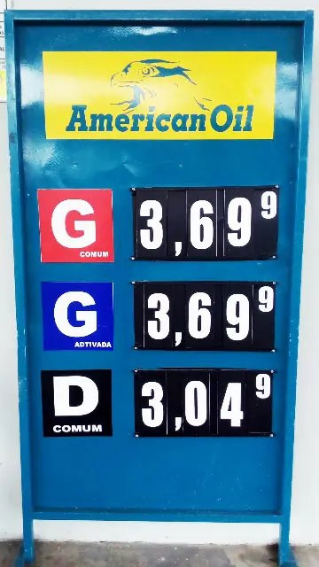 O Posto American Oil, no Centro de Guabiruba, anuncia que estará vendendo gasolina nesta sexta-feira (19) a R$ 3,69 o litro.