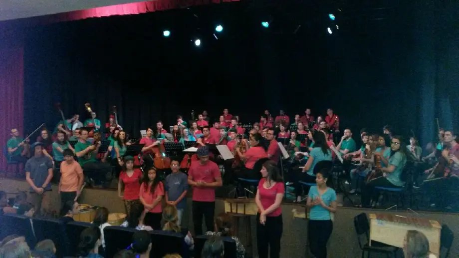 De forma gratuita a comunidade, principalmente as crianças acompanharam a apresentação da orquestra com apresentação teatral. No final da apresentação as crianças receberam os pratinhos com doces colocados por São Nicolau.