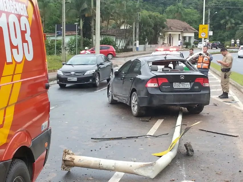 Colisão em poste de iluminação em Guabiruba