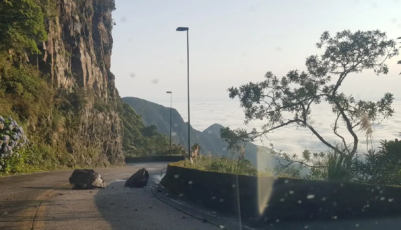 Blocos rochosos caem na rodovia da Serra do Rio do Rastro