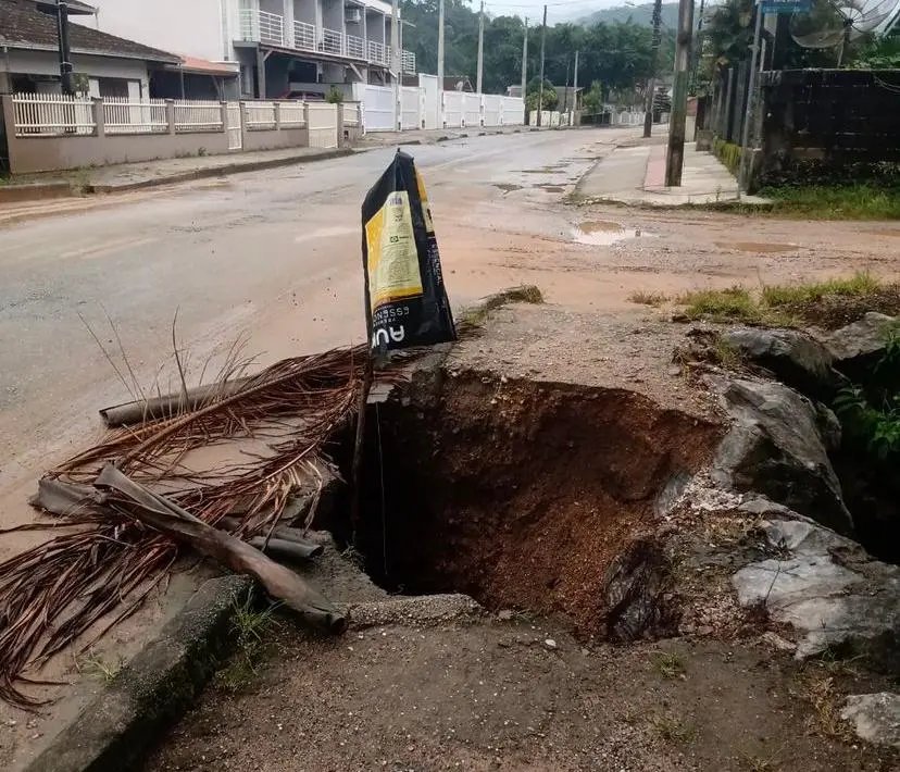 Moradores na rua Arnodo Ristow, ni bairro Zantão, em Brusque, estão há mais de 15 dias reclamando de um problema grave. Uma cratera abriu entre a rua e a calçada. A cada dia que passa, o buraco vem aumentando.