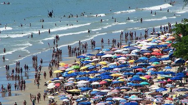 Na região do litoral as temperaturas oscilaram entre 32°C e 36ºC. Depois do último fim de semana com chuva as praias do Estado ficaram lotadas durante o dia inteiro. Quase não havia espaço na areia.