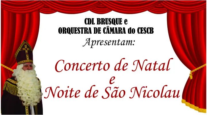 Neste domingo (10), a Câmara de Dirigentes Lojistas de Brusque – CDL Brusque, em parceria com a Orquestra do Centro Empresarial, Social e Cultural de Brusque (CESCB), realiza mais uma edição da Noite de São Nicolau e do Concerto de Natal.