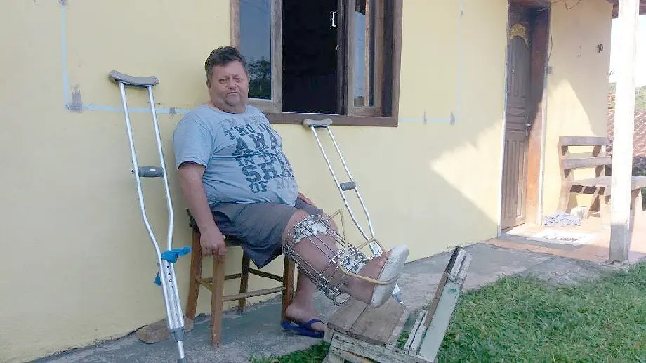 O resultado foi uma perna quebrada e nove cirurgias desde então. A segunda delas ocorreu menos de um ano depois do acidente. Em casa, o curativo infeccionou e ele teve de ser hospitalizado novamente. Foram 30 dias em recuperação no Azambuja. “Fui e vim várias vezes de um hospital em Governador Celso Ramos, onde fiz outra cirurgia e faz um ano que estou com ferros na perna”, conta.