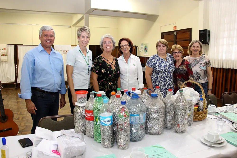 Da mesma forma, um volume significativo foi doado pelo grupo Esperança, da Ordem Auxiliadora das Senhoras Evangélicas (OASE), da Igreja Evangélica de Confissão Luterana de Brusque. Diversas garrafas PET grandes e pequenas, vidros, garrafas plásticas de água, entre outras, foram doadas com centenas de lacres cada uma.