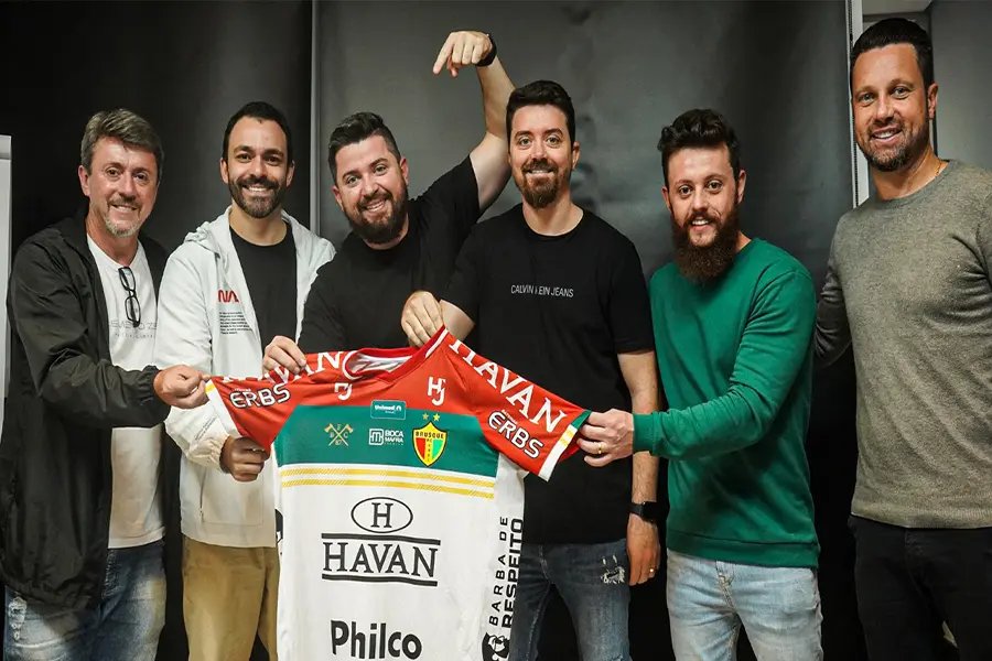 Foi em maio, durante a segunda partida da semifinal do Campeonato Catarinense 2021, que um movimento da torcida do Brusque Futebol Clube deu o start definitivo para uma ideia antiga: unir a empresa referência nacional em cosméticos para barba e o clube da cidade onde ela nasceu. A hashtag "Bruscão de Respeito" deu início a parceria que foi oficializada na manhã de ontem, segunda-feira (21) na sede da empresa, com a assinatura do contrato de patrocínio entre os quatro sócios proprietários da Barba de Respeito e o diretor executivo André Rezini.