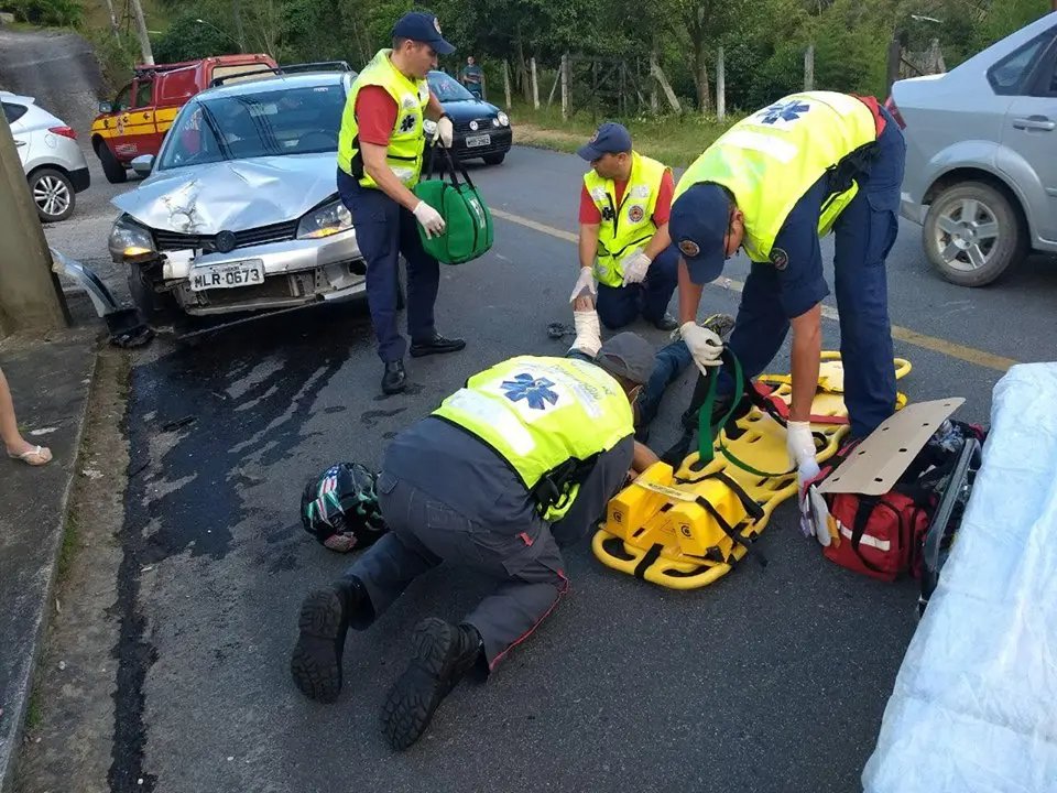Na colisão, o condutor da moto figou ferido e teve de ser levado ao pronto socorro do hospital de Azambuja. A frente da Saveiro ficou destruída, pois o motociclista acabou arremessado sobre ela.