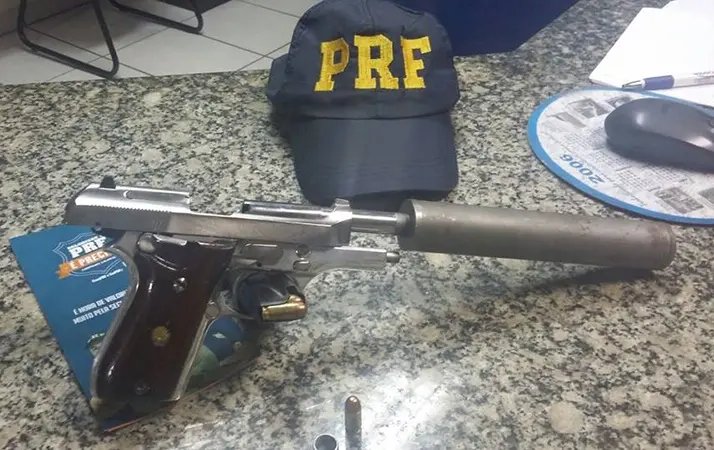 A Polícia Rodoviária Federal apreendeu uma pistola carregada com 12 munições e com silenciador no filtro de ar de automóvel na BR 101, em Joinville. A apreensão ocorreu na madrugada desta quinta-feira (05) por volta de 00h10, policiais rodoviários federais abordaram um Vectra GT preto na BR 101, em Joinville. O condutor mostrou-se nervoso durante a fiscalização e os policiais encontraram no filtro de ar do automóvel uma pistola calibre .380, carregada com 12 munições e um silenciador.