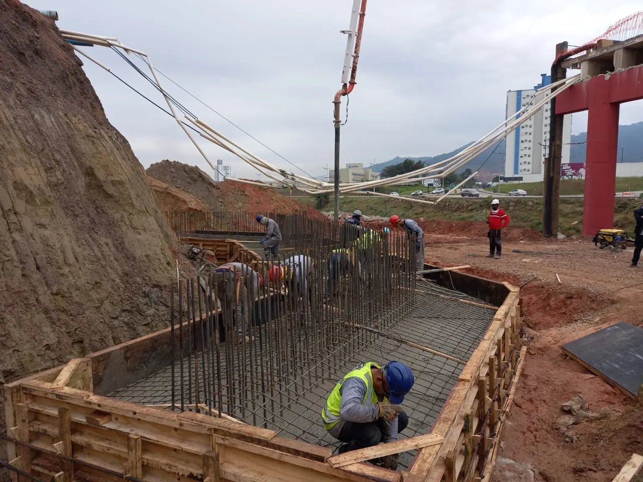 “Estive hoje na ponte Santos Dumont acompanhando a concretagem do bloco de fundação da ponte. São mais de 80 metros cúbicos de concreto, ou seja, mais de 10 caminhões de concreto utilizados nesse bloco de fundação”, explica.